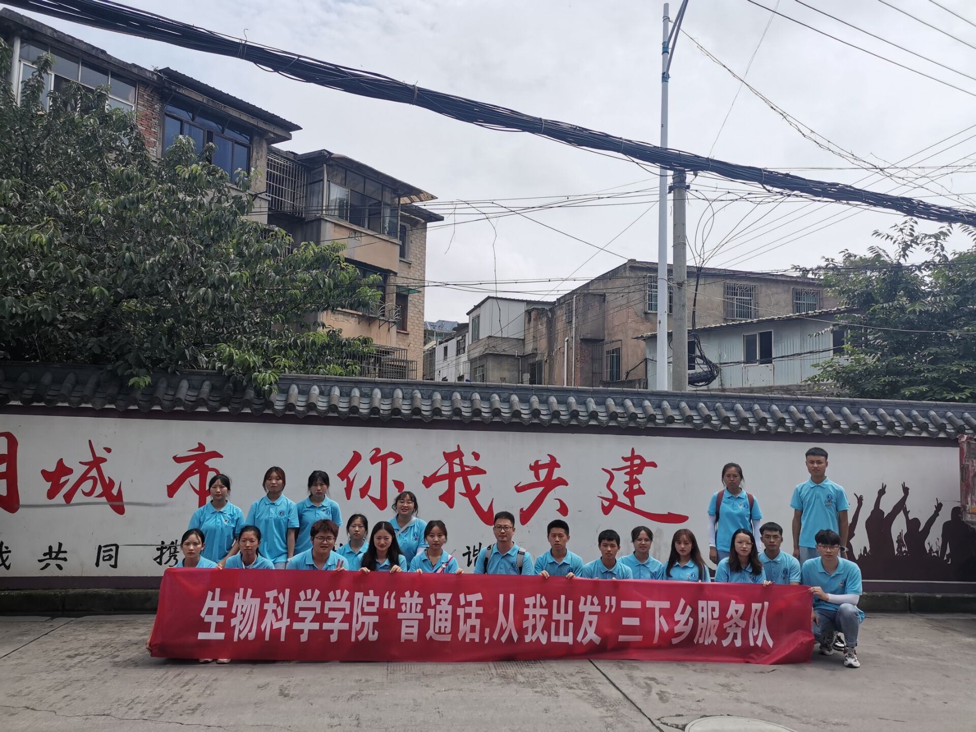 为了共同庆祝中国共产党成立100周年,提高乡村居民的语言沟通能力,增强乡村居民的素养,助力乡村振兴,mjm世界杯官网“普通话,从我出发”三下乡服务团于7月22日在mjm世界杯官网团委书记梁涛的带领下,继续在贵阳市乌当区新添寨居民聚集地开展以普通话宣传为主的社会实践活动。